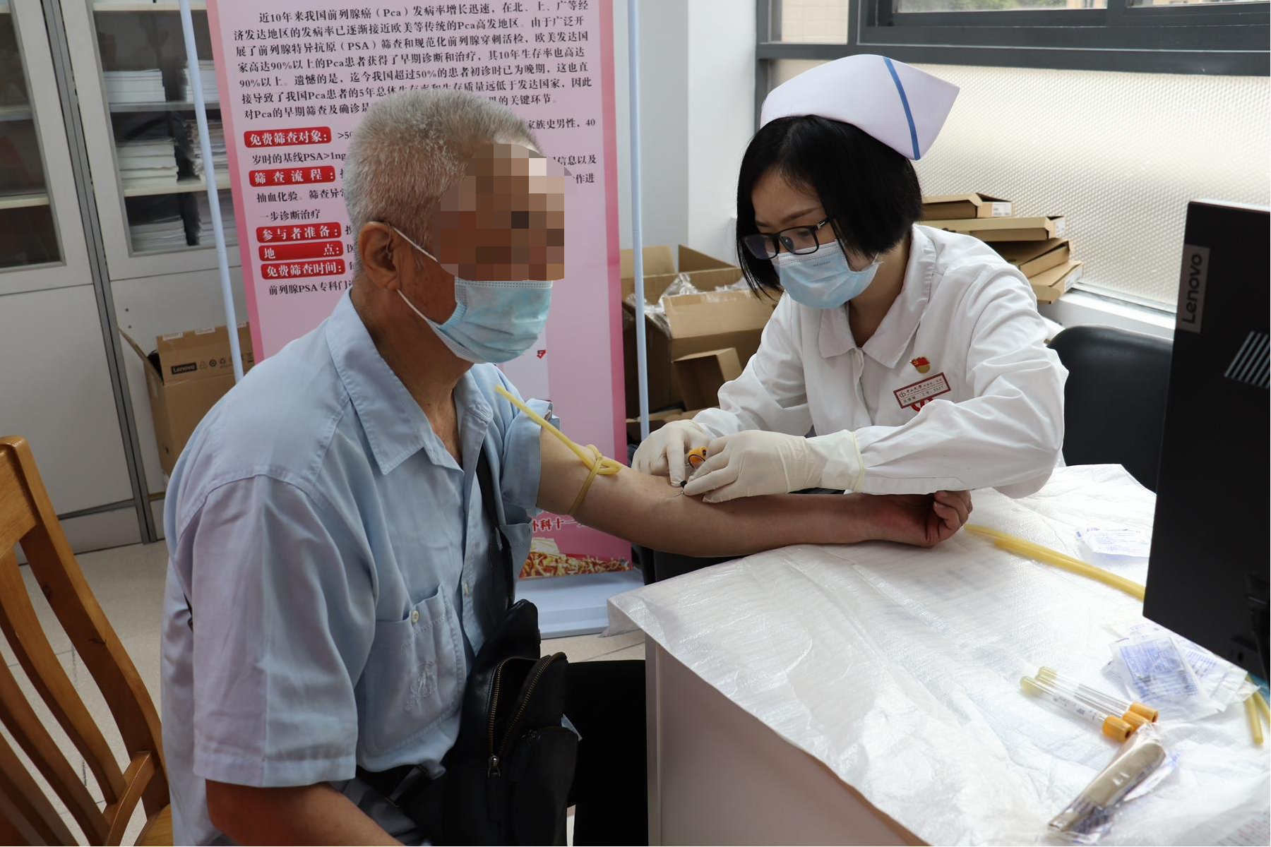 可做免费筛查的对象为>50周岁男性、年龄>45周岁且有前列腺家族史男性,40岁时的基线PSA>1ng/ml的男性。参与者携带病历本及身份证到医院门诊楼5楼外科门诊20诊室登记信息并抽血化验,化验结果可在15分钟内获取,异常者可通过挂号“前列腺PSA专科门诊”作进一步诊断治疗。支部安排有资质的党员轮流参与看诊及抽血工作。