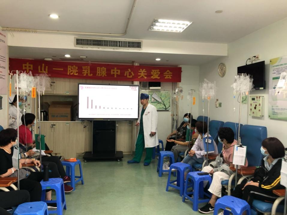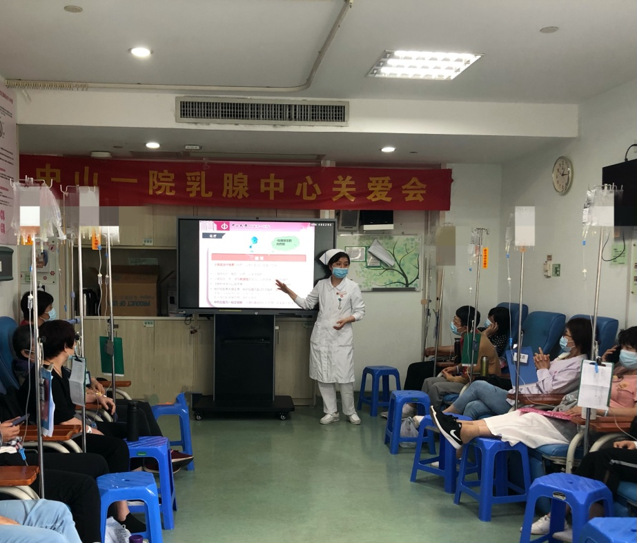 活动当日,莫雄飞护长首先介绍了乳腺癌的发病情况以及讲座的专题;随后,邵楠教授介绍了乳腺癌预防知识、定期检查的重要性,适龄女性应保持每年规律的乳腺癌筛查,25岁以后应该定期进行乳腺检查,40岁以后每年都应该接受乳腺钼靶检查,早期发现及时接受治疗。同时介绍了乳腺癌的靶向治疗期间的注意事项,对靶向药物的种类、靶向药物使用期间可能出现的治疗副反应以及副反应(心脏毒性、腹泻、乏力等)的应对措施。吉东娅护士介绍了乳腺癌患者生活方式,乳腺癌患者获得诊断治疗后,建立健康的生活方式(合理营养膳食、维持健康体重、规律的体力活动等)有助于提高患者的生存率和生活质量。讲解结束后,几位专家就患者对乳腺癌的预防、治疗中的疑问以及如何预防乳腺癌复发和日常康复中的注意事项等问题进行了解答。