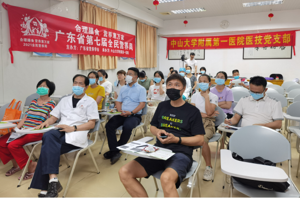 医技党支部把学习党史同开展“我为群众办实事”实践活动结合起来,立足本职岗位为人民服务。适逢广东省第七届全民营养周,5月17日下午, 医技党支部在1号楼5楼健康教育部,同时以现场讲课和线上直播的方式开展了“如何合理膳食,如何吃出健康”的营养专题讲座及义诊活动。