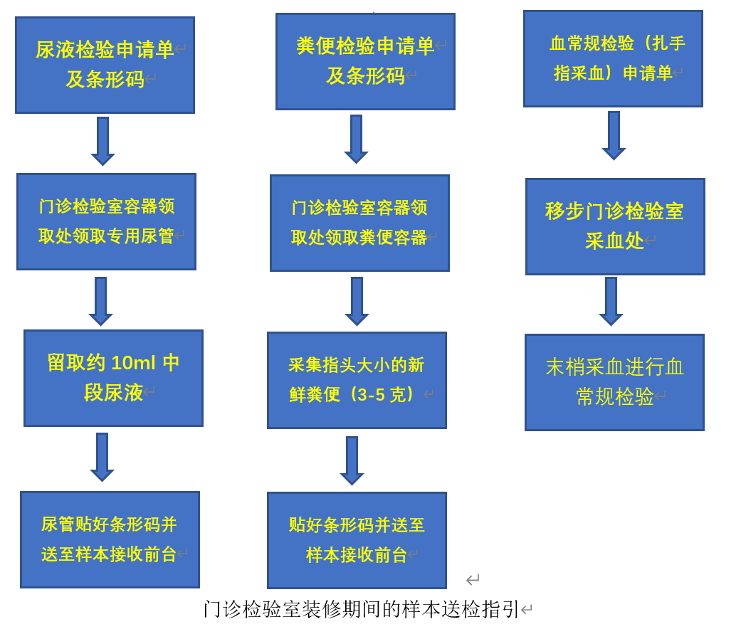 由于样本接收前台需要围蔽施工,原来便捷的样本送检路线已完全改变,病人需要耗费大量时间寻找样本接收处。对此,医学检验科在路口设置清晰明了的线路指引,方便病人快速到达急诊检验室,同时也方便护工将住院急诊样本快速送至门急诊检验样本接收处,大大节省送样的时间。