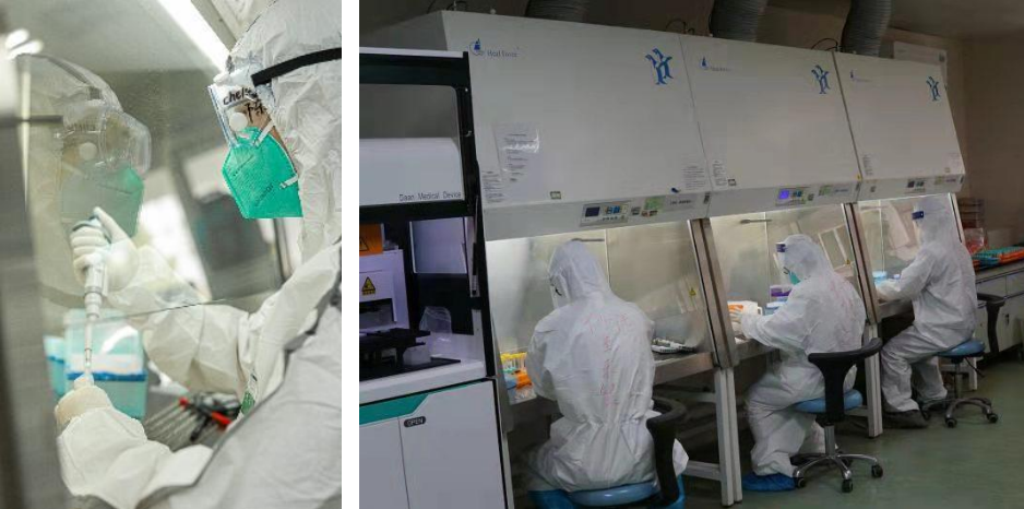 正式开展检测工作后,朱宏基发现真正的考验才刚刚开始。正处于炎热的夏季,加上密不透风的防护服,检测人员每次从方舱出来就像洗了一次澡。当遇到雷雨大风的恶劣天气时,他们不能在舱外提前穿好防护服,只能挤在狭小的方舱里严格按控感要求进行更换。但这些都是值得的,朱宏基同志所在的佛山方舱实验室每日满负荷检测量可以达到3000管,结合目前采取十人混采的检测办法,一天能完成三万人的核酸筛查工作,这有力缓解了当地核酸检测的压力,减少了当地居民的等待时间,给他们带去了取得战“疫”胜利的信心。