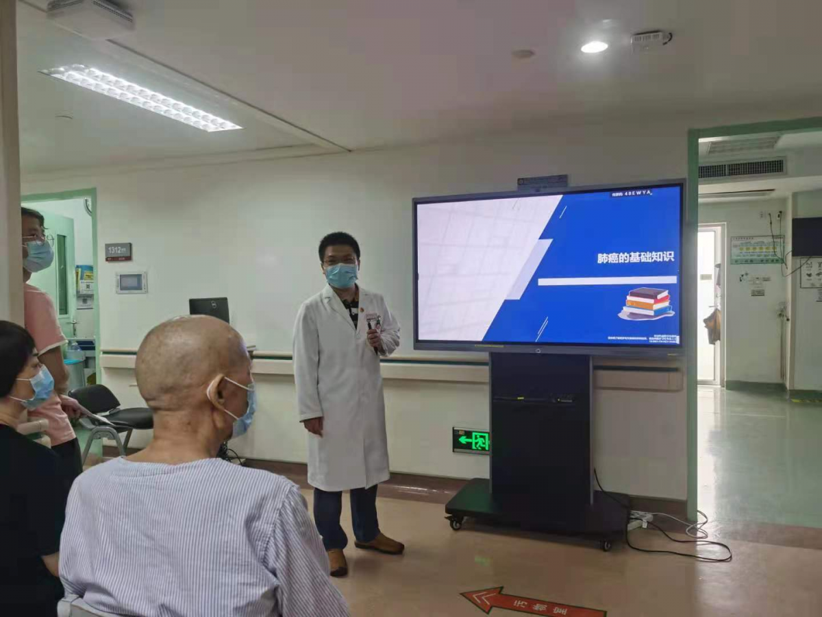 外科九支部党员朱豪帅同志和廖颜雪钰同志分别为在院的患者及家属作了《肺癌的基础知识》和《胸外科患者健康教育》的科普宣教,针对胸外科相关疾病的筛查和治疗、术前术后的健康管理,术后的身体和心理恢复等做了详细的讲解。