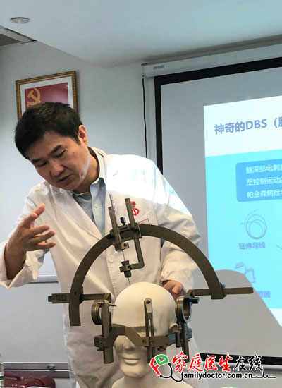 “脑起搏器,即脑深部电刺激(DBS),是帕金森病外科治疗领域里程碑式的新技术。它是通过植入大脑中的细微电极发射电脉冲刺激脑内核团,进而达到控制患者症状的目的,是国际上最先进的神经调控技术之一。”刘金龙教授介绍道。